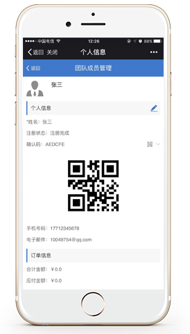 新升级的团队注册功能完美实现了移动、PC端的互通管理,主办方负责操作的领队除了一般日常通过PC端进行管理查阅本团队人员的相关活动详情数据外,在办会活动时也可选择开启“用手机管理”的服务,将所有的操作数据传输至移动端,在外也可便捷处理自己团的相关事项。